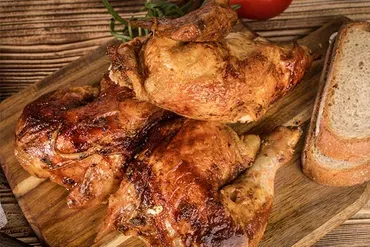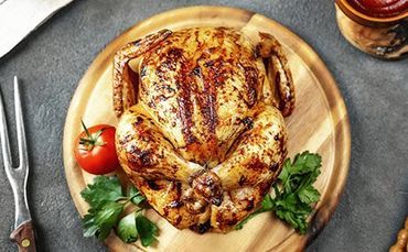 Tender and juicy chicken quarters roasted with a touch of Rosemary for full, rich flavor. Served with Savory garlic mashed potatoes and Buttered and seasoned sautéed vegetables.