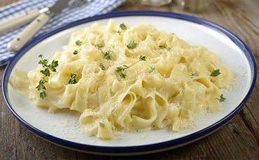 Cheese ravioli pasta tossed with our house made garlic Alfredo sauce.