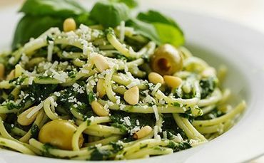 Fettuccini pasta is tossed with olive oil, Italian seasonings and fresh vegetables.